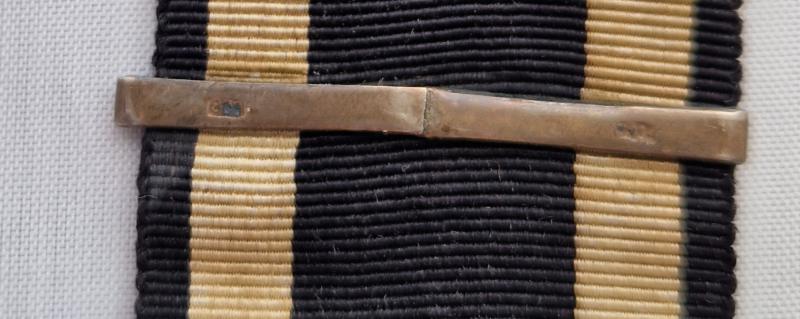 Original Imperial Iron Cross ribbon with added 800 marked silver watch fob bars.